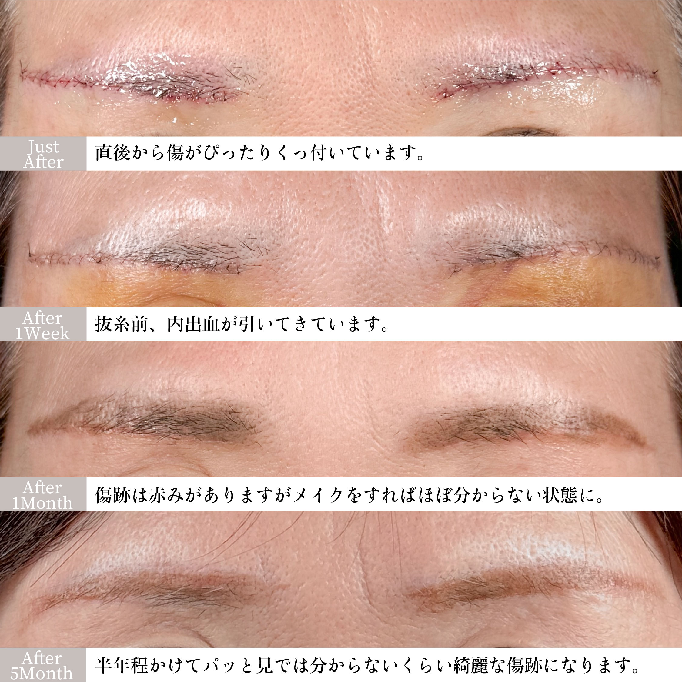 腫れ・内出血(1~2週間)、左右差、傷跡、ひきつれ、感染など