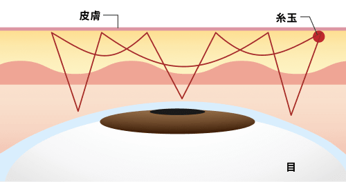 メスを使用せず、極細の医療用糸でまぶたを留めるため、自然な仕上がりが期待できます。施術時間は約10〜15分と短く、日帰りでの施術が可能です。