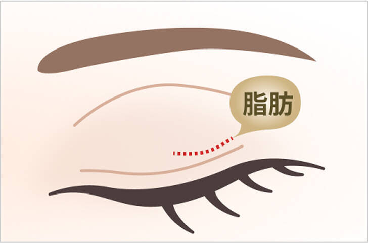 まぶたの脂肪取りでは二重ライン上に数ミリの小さな穴をあけ、脂肪を除去します。二重の持続力だけでなくデザインもつくりやすくなります。まぶたの腫れぼったさが気になる方にもおすすめです