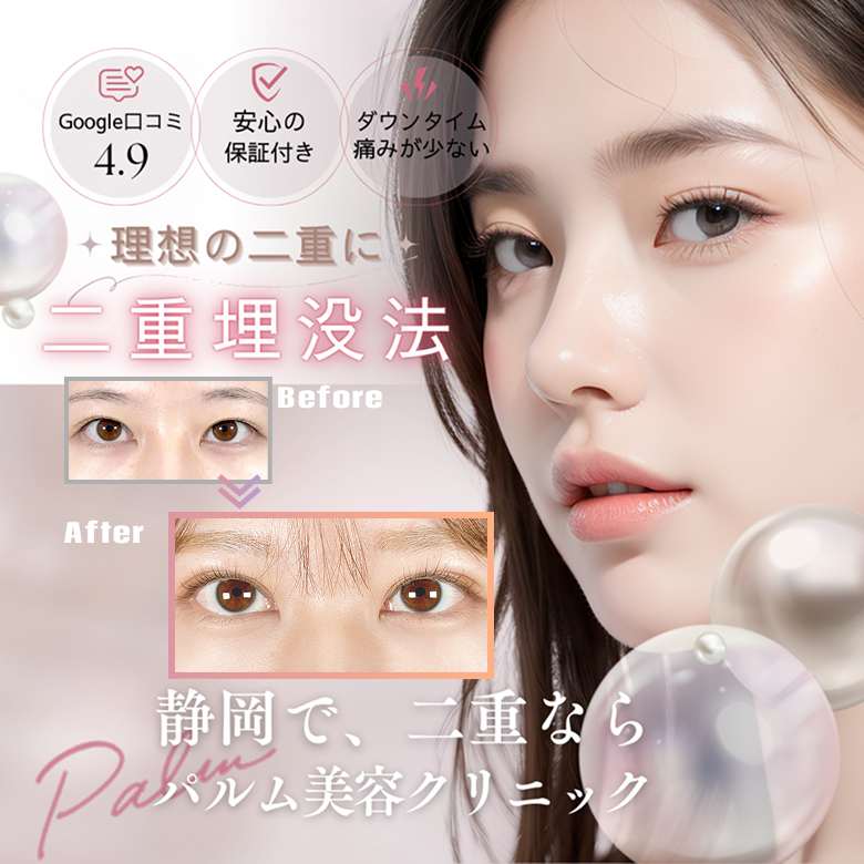 二重埋没法の持続期間は一般的に3〜5年程度と言われています。ただし、まぶたの皮膚の厚みや脂肪の量、生活習慣によって異なります。パルム美容クリニックでは安心の保証制度がついておりますので、保証期間内であれば取れてしまっても無料で再施術可能です。