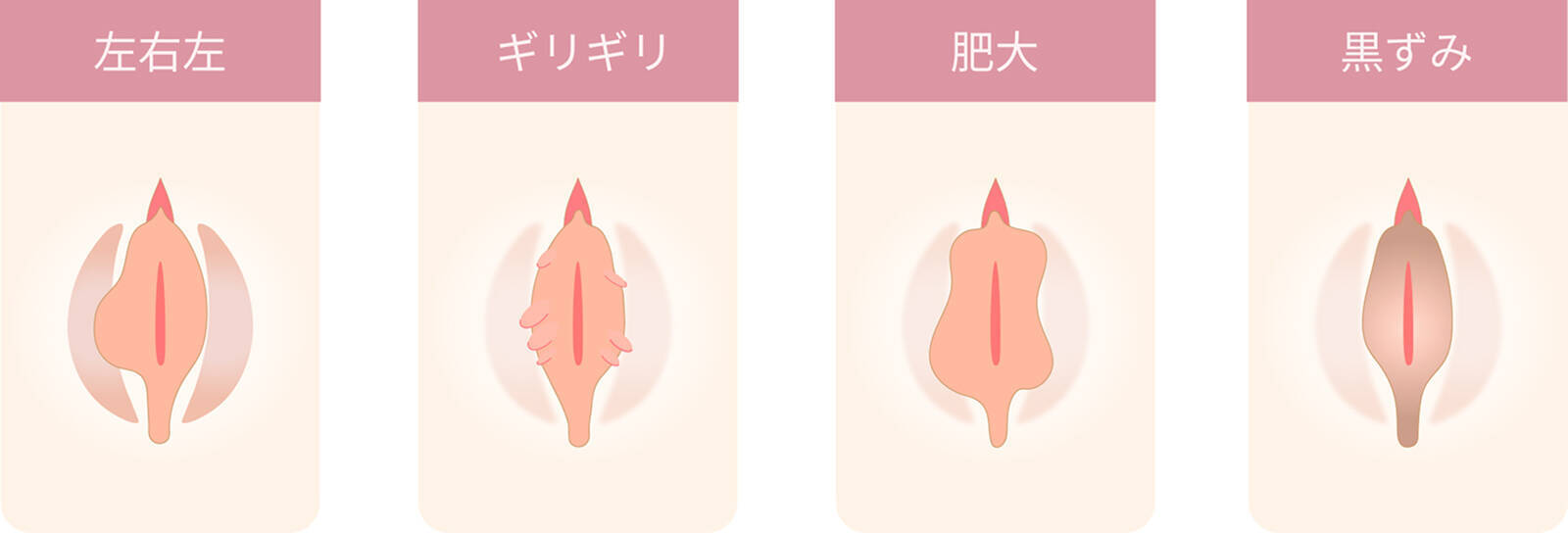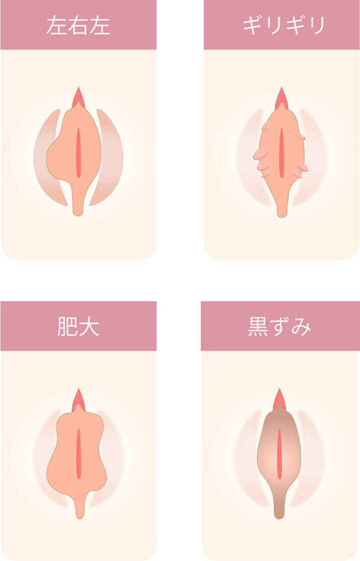 生まれつきの形や、出産・加齢による変化で小陰唇が肥大すると、下着にこすれて痛みやかゆみを感じる場合があります。見た目の改善だけでなく、機能面の悩み解消にもつながる施術です。