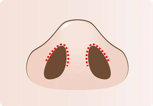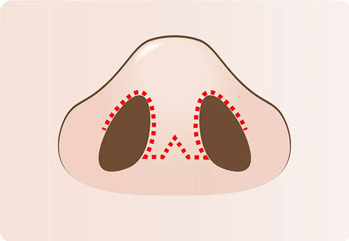 鼻の穴の中を小切開するクローズド法を採用しているため、外から傷跡が見えにくくなります。