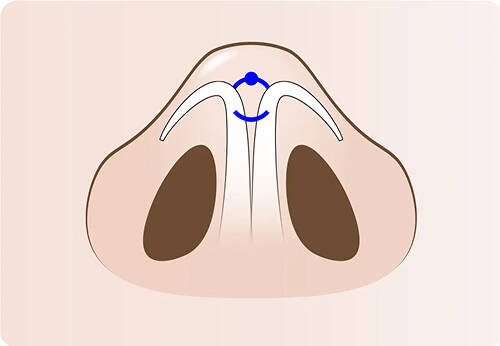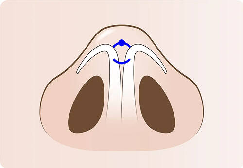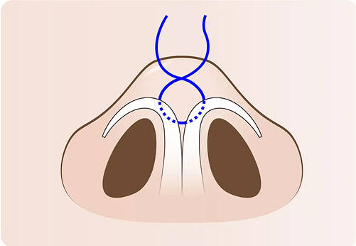 鼻翼軟骨同士をまとめるように結び、鼻先の形を細くします。