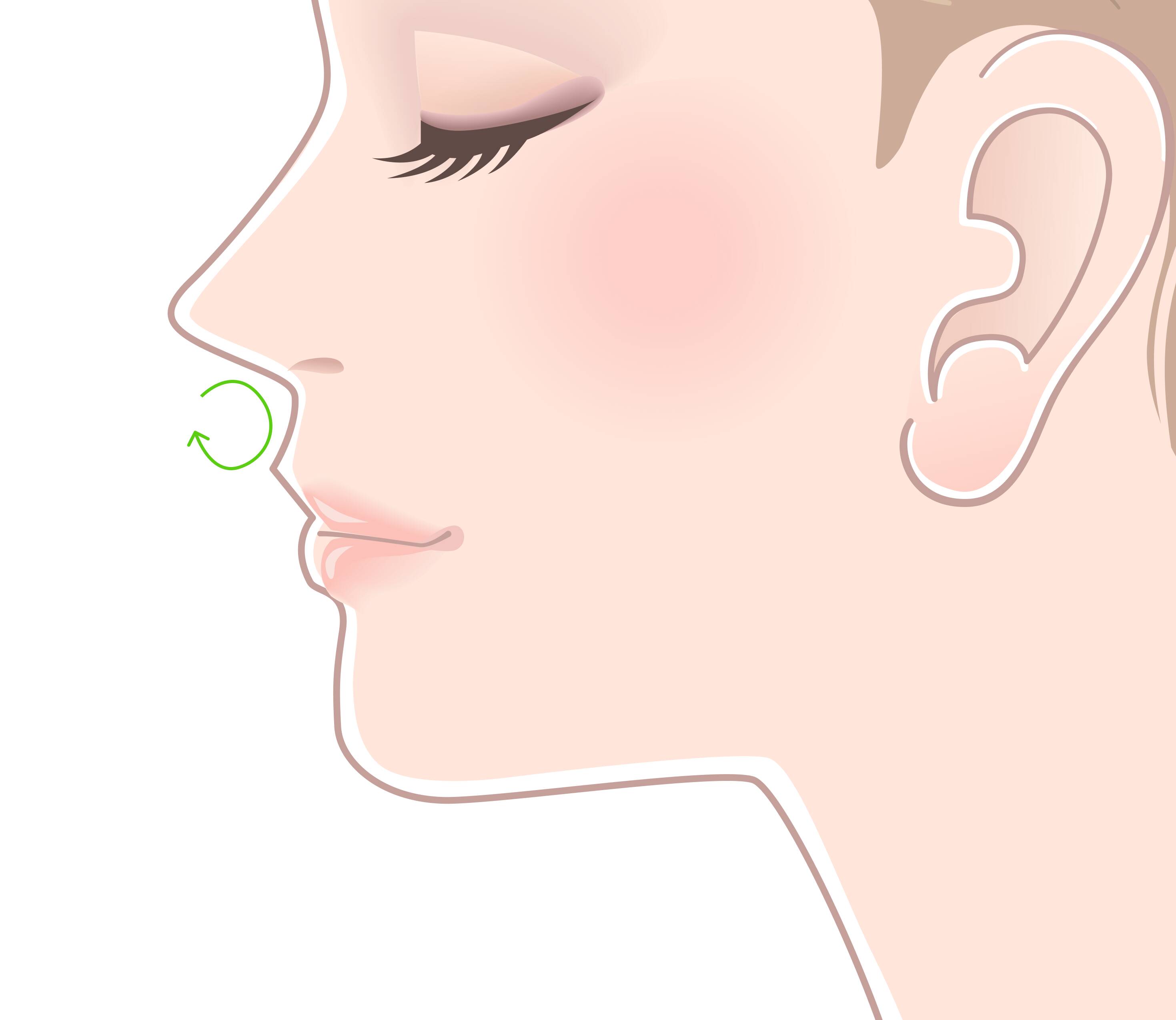 鼻と上唇の間の距離を短くすることで、顔全体が引き締まり、若々しく華やかな印象を与えることができます。