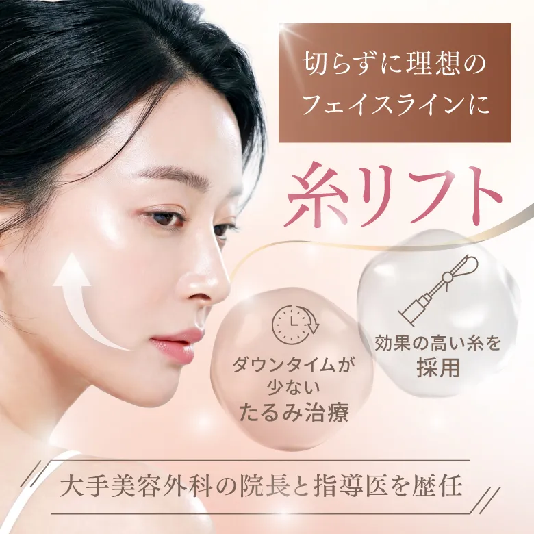 糸リフトは、皮膚の下に特殊な糸を挿入し、物理的に皮膚を引き上げることで、たるみを改善します。また、糸が皮下組織を刺激することで、コラーゲン生成が促進され、肌のハリや弾力が向上します。これにより、自然なリフトアップ効果と美肌効果が期待できます。
